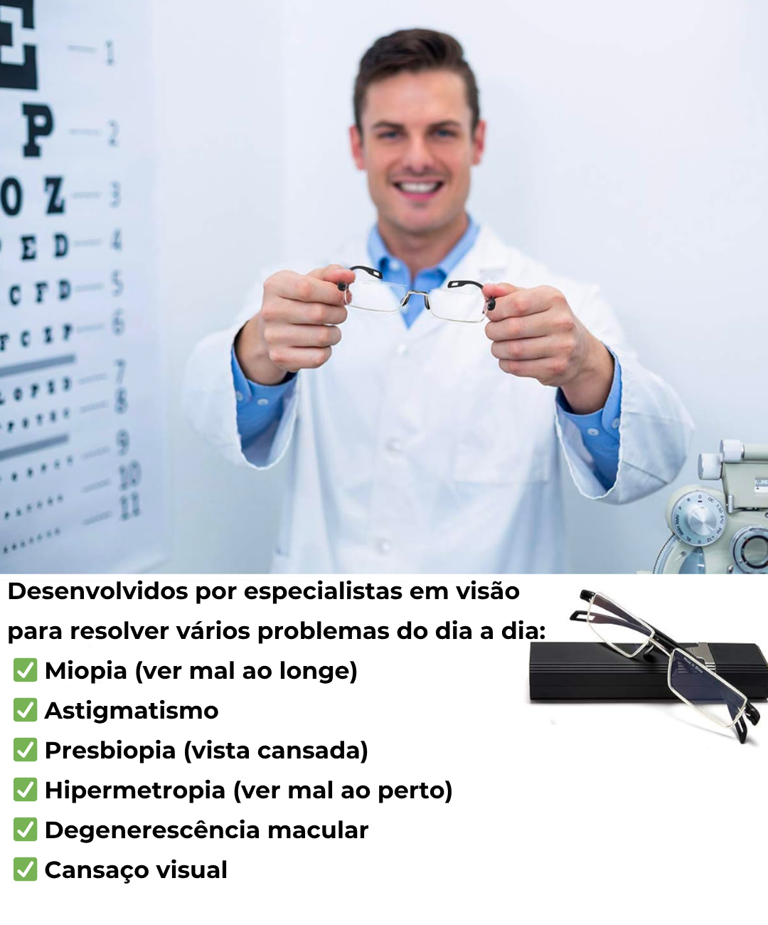 - Estojo de couro de oferta: incluído na compra do seu pack de Óculos Sensiles Multifocais.
